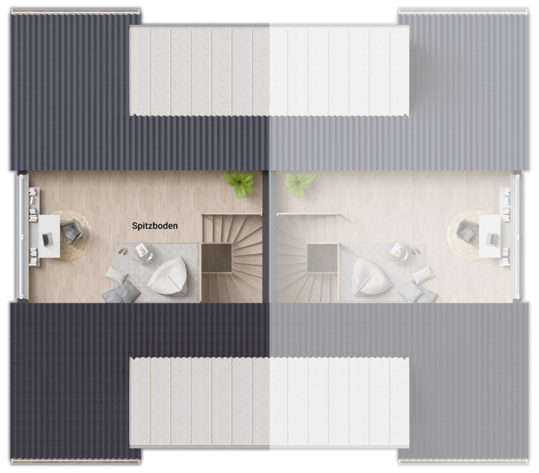 Auch optisch ist das Doppelhaus Duett 125 ein echter Hingucker. Die moderne, gradlinige Architektur überzeugt und bei der Fassadengestaltung können farbliche Akzente gesetzt werden. Das Duett 125 eignet sich auch für kleine Grundstücke, da es die vorhandene Grundstücksfläche optimal ausnutzt und trotzdem viel Wohnraum für zwei Familien bietet.