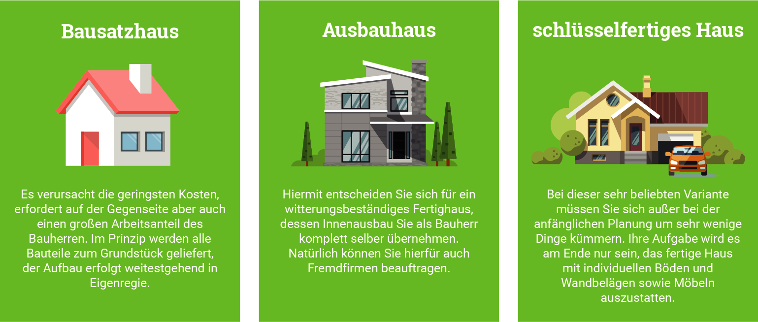 In Bezug auf Fertighäuser lassen sich mittlerweile sehr viele bauliche Möglichkeiten nutzen, sodass im Vergleich zur Massivbauweise eigentlich keine nennenswerten Abstriche hingenommen werden müssen. Im Folgenden finden Sie eine kompakte Übersicht, die die wichtigsten Fertighaustypen kurz vorstellt.