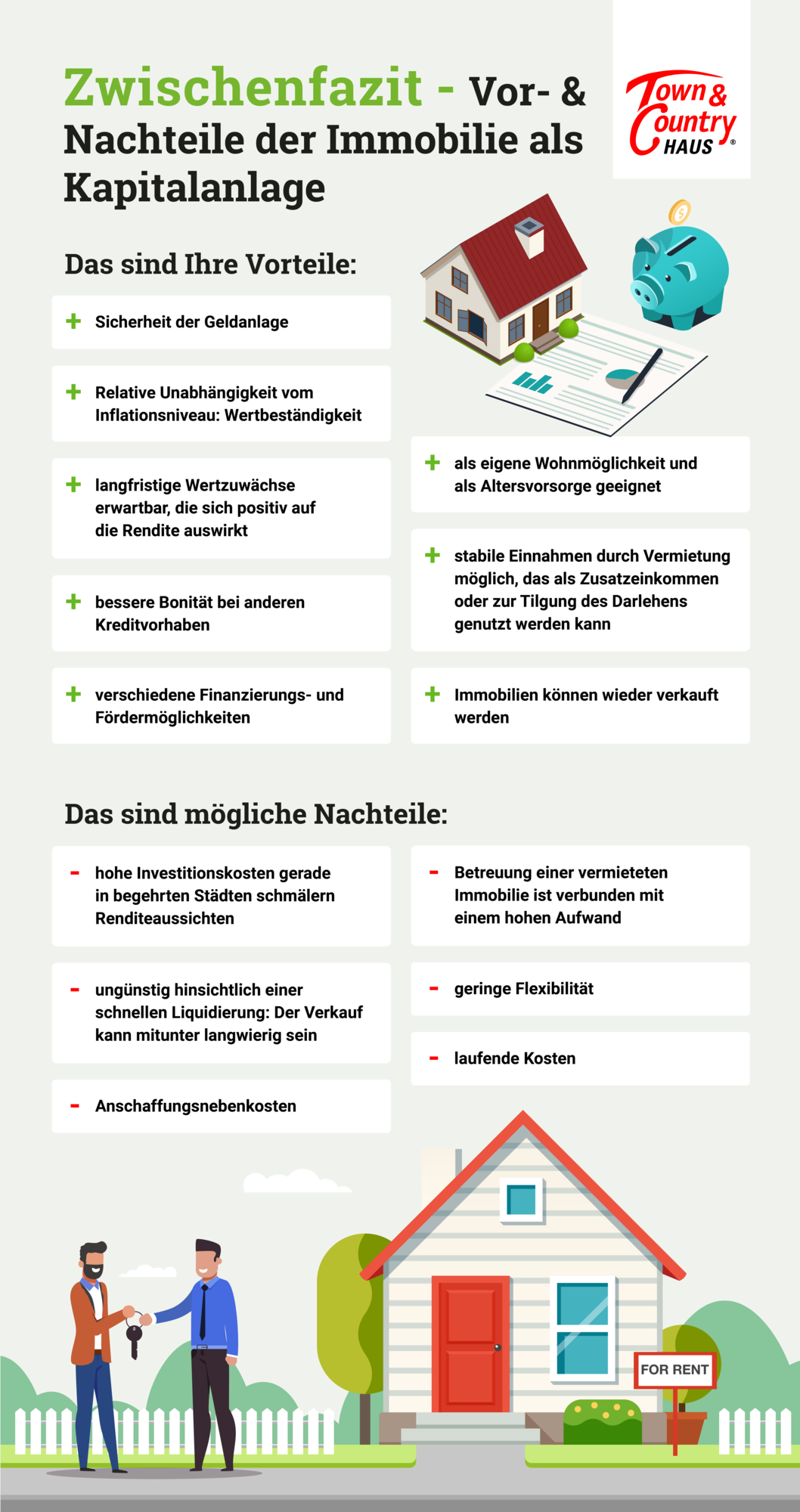 Der Verkauf eines Hauses oder einer Eigentumswohnung ist mit einem höheren Aufwand verbunden und kann mitunter Monate in Anspruch nehmen – anders als beispielweise beim Tagesgeldkonto: Die Rücklagen lassen sich sofort umwandeln. Im Unterschied jedoch zu anderen langfristigen Anlageformen wie beispielsweise einer Lebensversicherung kann der Wertzuwachs bei einer Immobilie bereits nach zehn oder zwanzig Jahren beträchtlich sein, so dass sich eine frühzeitige Veräußerung bisweilen nicht so gravierend auf die Rentabilität und den Ertrag auswirkt.