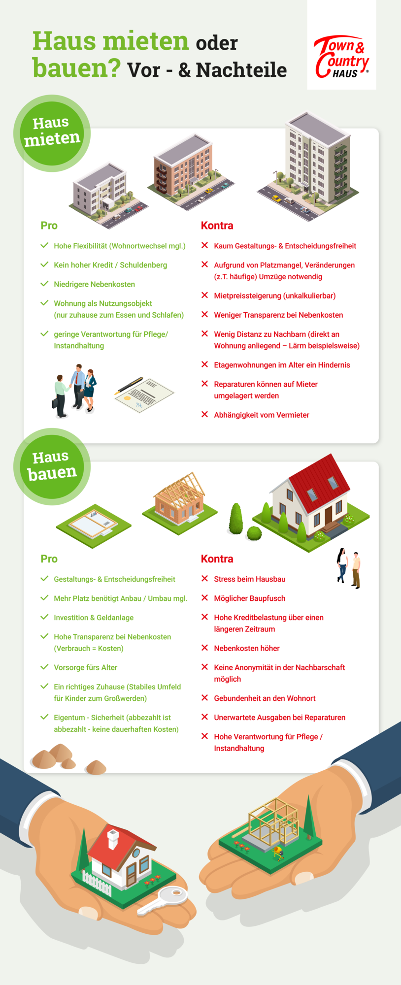 Statt Jahre lang Miete für eine fremde Wohnung zu zahlen, investieren Sie doch lieber den gleichen Beitrag in Ihr eigenes Haus! Town & Country Haus macht es möglich: Durch die transparente Kalkulation unserer Häuser entsteht eine direkte Vergleichbarkeit.